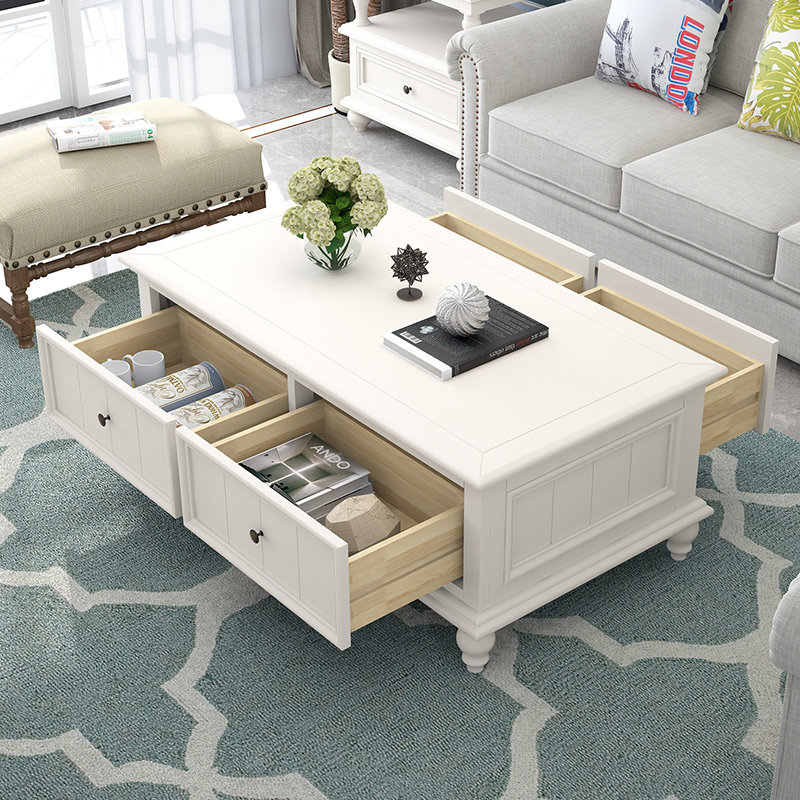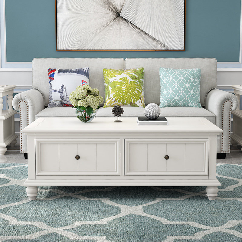 American-style solid wood coffee table antique and old tea table small apartment coffee table TV cabinet combination red toon wood living room furniture