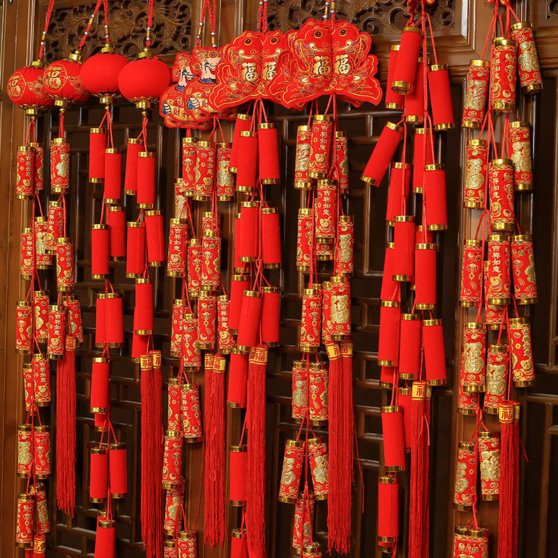 New Year decorations items Fubao firecrackers string mall arranged 2023 Rabbit New Year's Day New Year's Eve Spring Festival Pepper Strings Pendant-Taobao