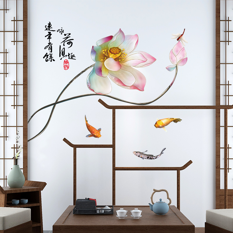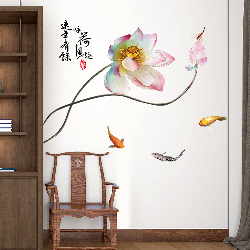 Chinese style 3d three-dimensional lotus wall stickers warm living room bedroom lotus stickers wall decoration wall wallpaper self-adhesive