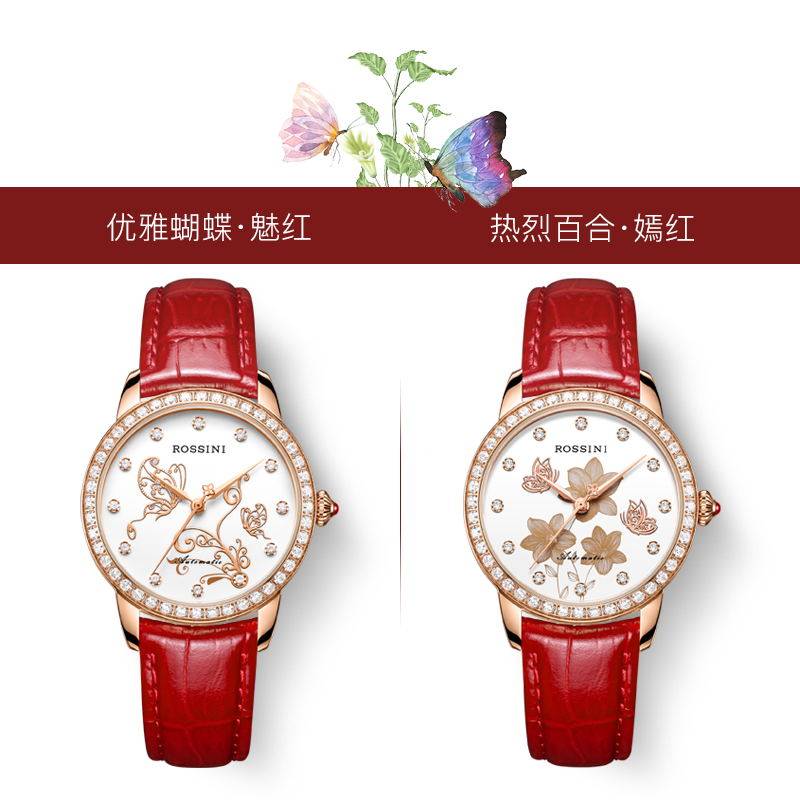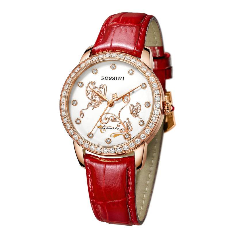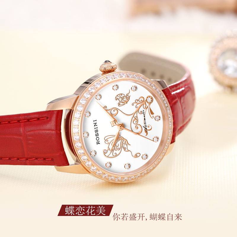 Rossini official watch women's automatic mechanical watch waterproof diamond women's watch trend belt ladies watch 5722