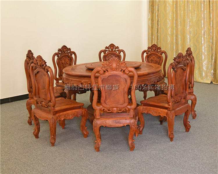 Burmese rosewood European-style dining table Mahogany deep-carved rose dining table Large fruit red sandalwood European-style round dining table thickened