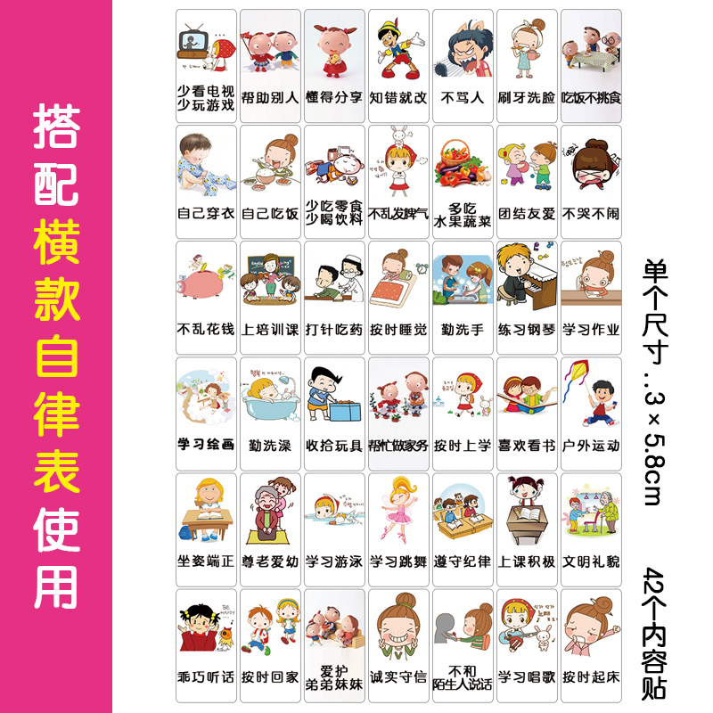 Children's life learning behavior habit development Record self-discipline table content Magnet text Magnetic stickers Refrigerator stickers