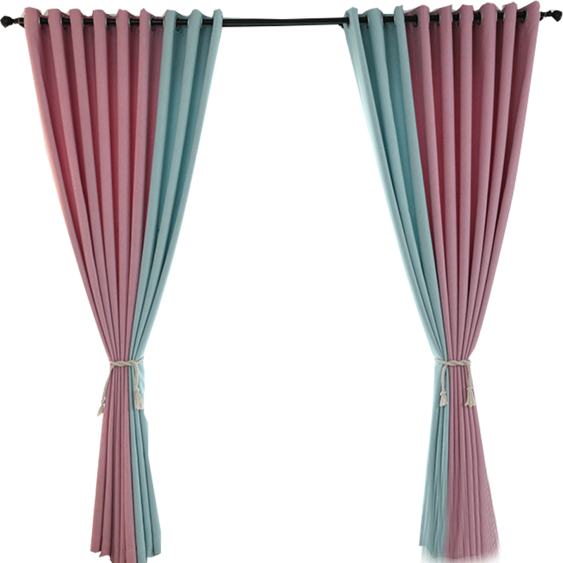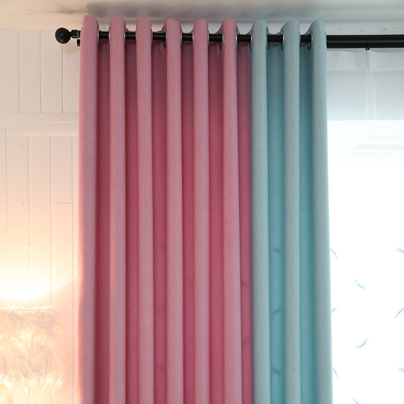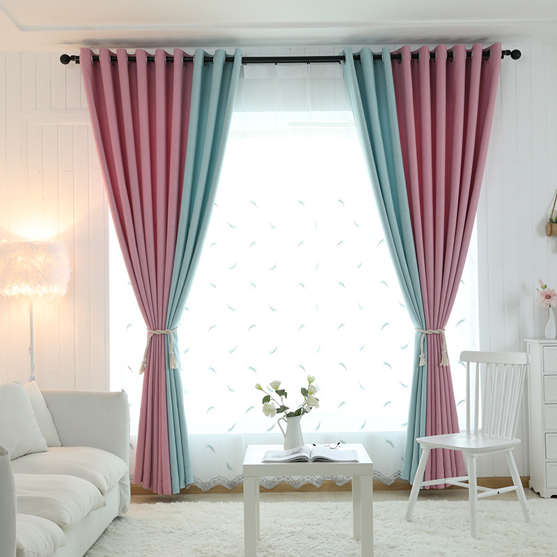 Nordic Pure Color Splicing Shading Curtains Children Cartoon Pink Princess Style Bedroom Curtain Feather Embroidered Veil