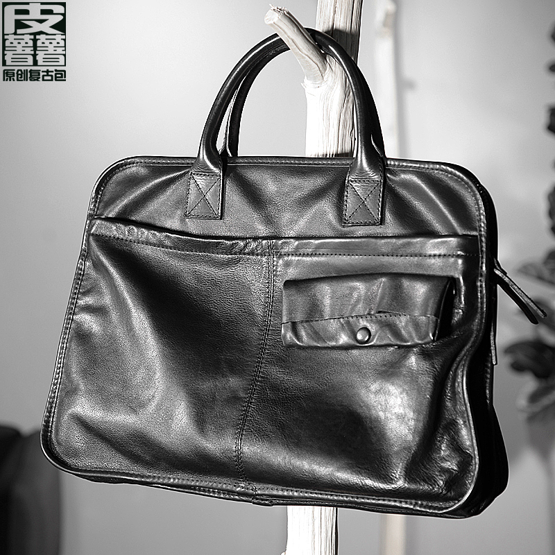 Young Minimalist Headlining Cow Leather Men's Bag Crosswalk Handbag Pure Leather Briefcase Business Computer Bag Skew Satchel-Taobao
