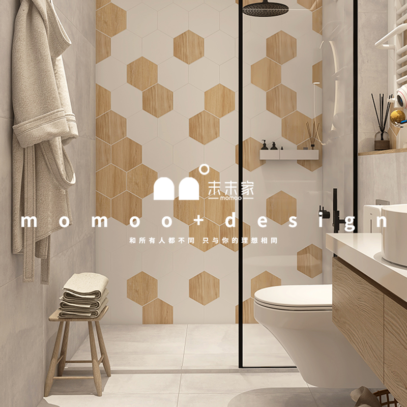 Weekend at home Nordic hexagonal brick wood grain brick Japanese style dressing room tile kitchen wall brick bathroom hexagonal floor tile