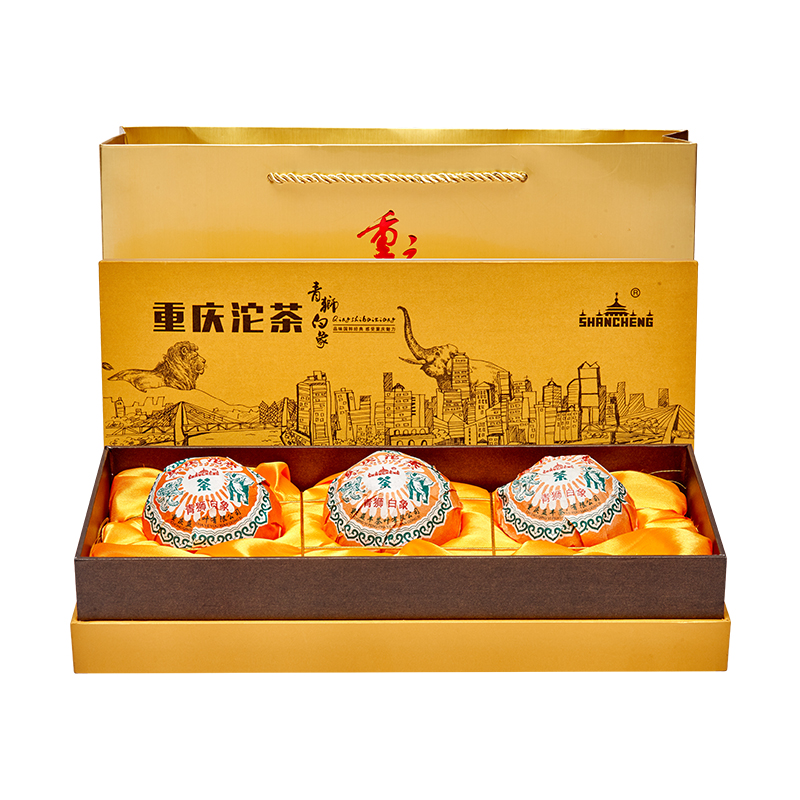 Mountain City Card Chongqing Tuo Tea Green Lion White Elephant Gift Box Dress 300g Special Produce Net Red Gift Gift Tea Companion Gift