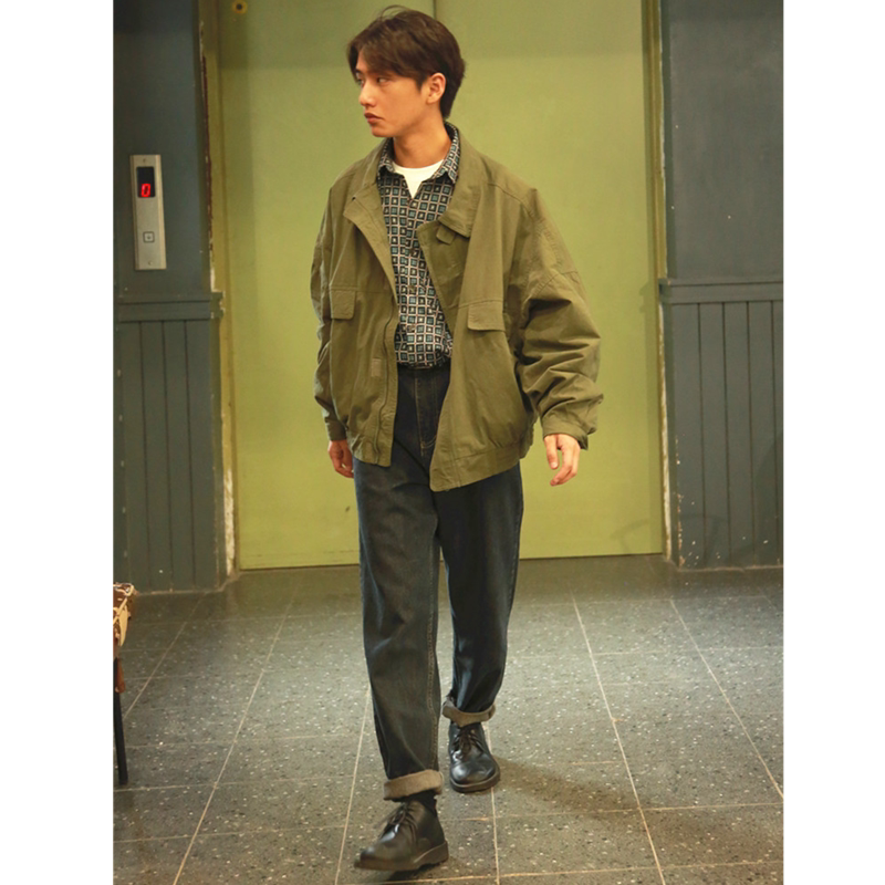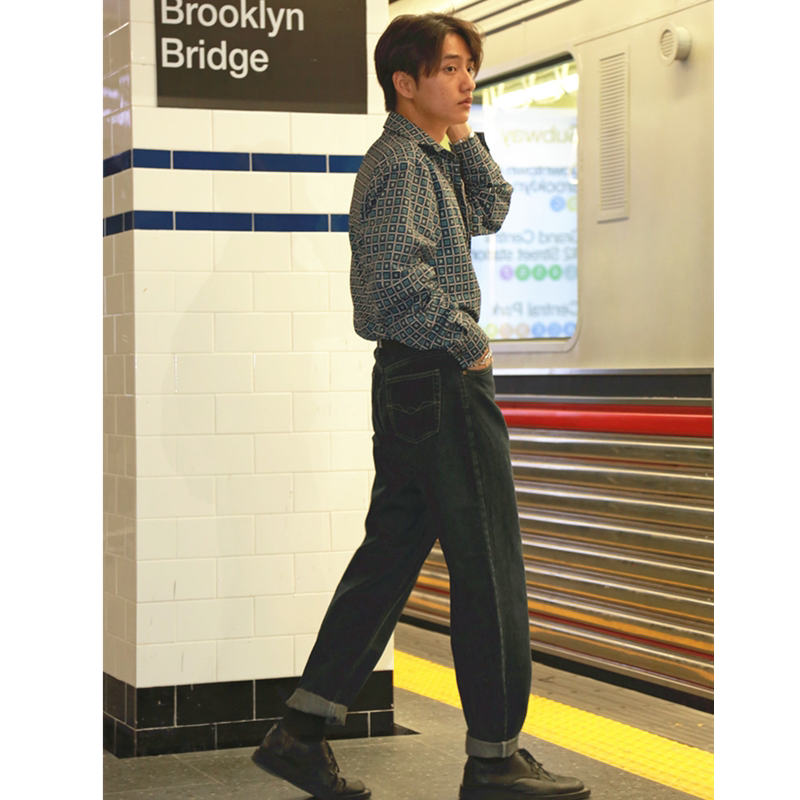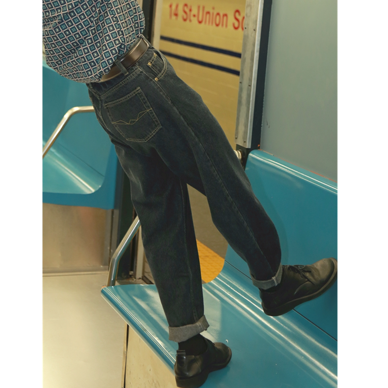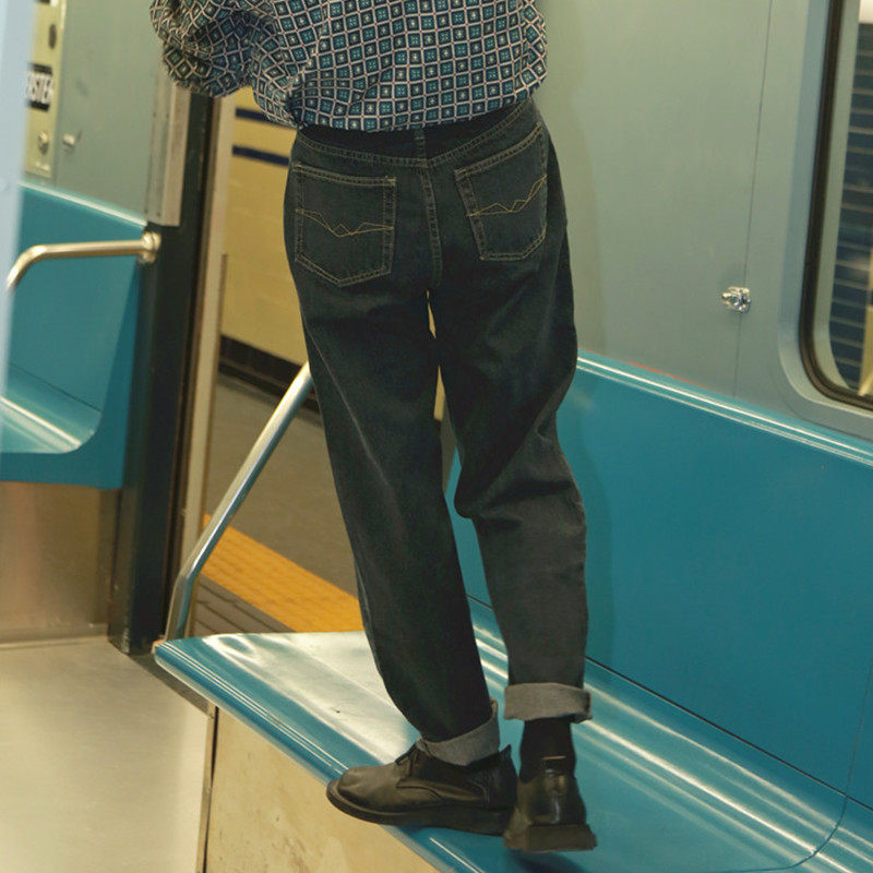 He Jianghai The same original recommendation washed retro port wind jeans high waist nine-point straight tube men's casual pants