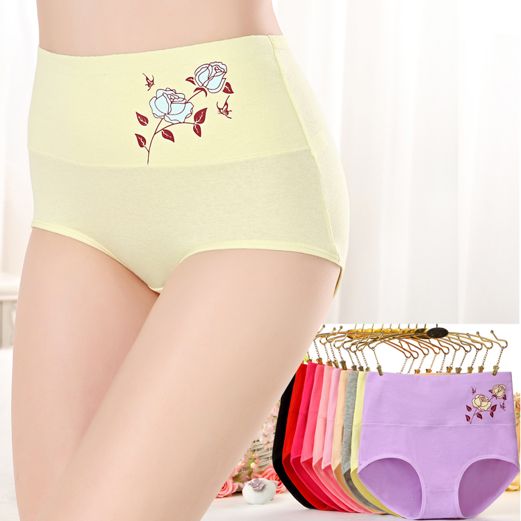 5 strips of clothing pure cotton fabric High waist to collect glutes No marks for more overweight MM printed women's triangle briefs female shorts-Taobao