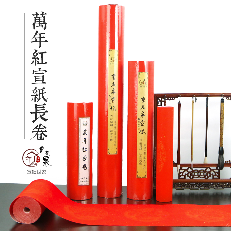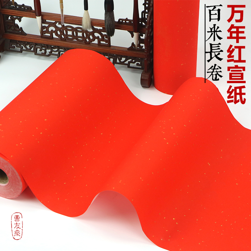 Cao Youquan Wannian Xuan Paper Brice Long Volume 100 m years Red Calligraphy Joint Special Paper Spring Couplets Paper Wholesale Seven Words Dragon Phoenix and Sprinkling Gold Calligraphy and Thickening Semi-Cooked And Semi-Cooked Rice Paper