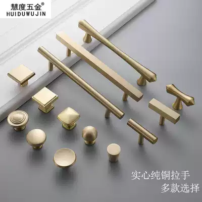 Pure copper round Nordic American overall cabinet drawer handle Chinese all copper modern simple gold wardrobe long handle