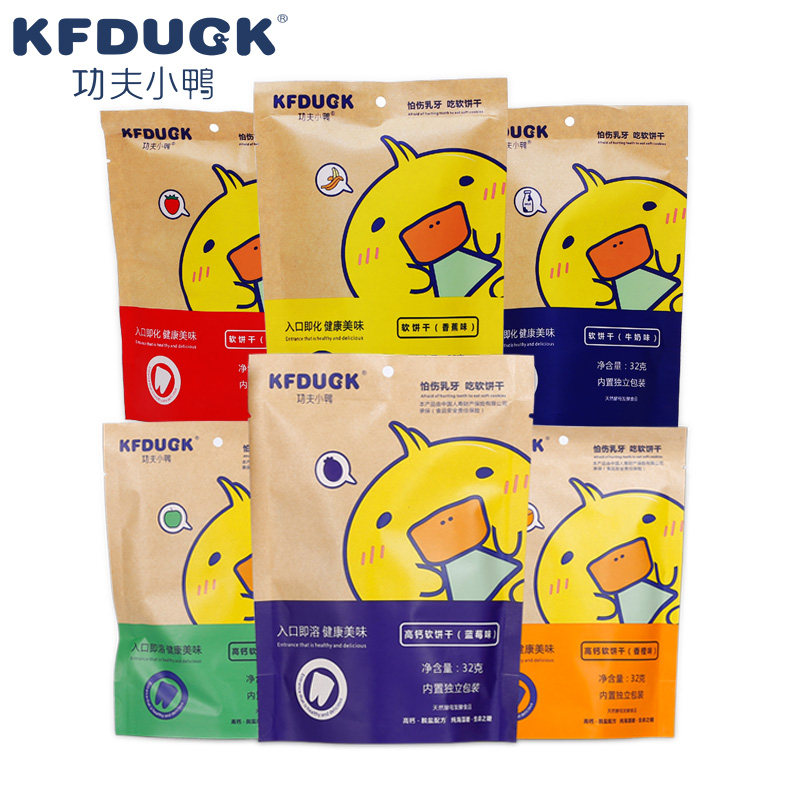 Kung Fu Duckling KFDUCK Fermented Soft Biscuits Fluffy And Soluble Kids Snack Fruit Flavor Milk Flavor Combo