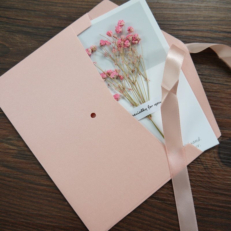 Custom#Creative color thickened ribbon bow pearlescent paper Special paper Western-style small fresh envelope short section