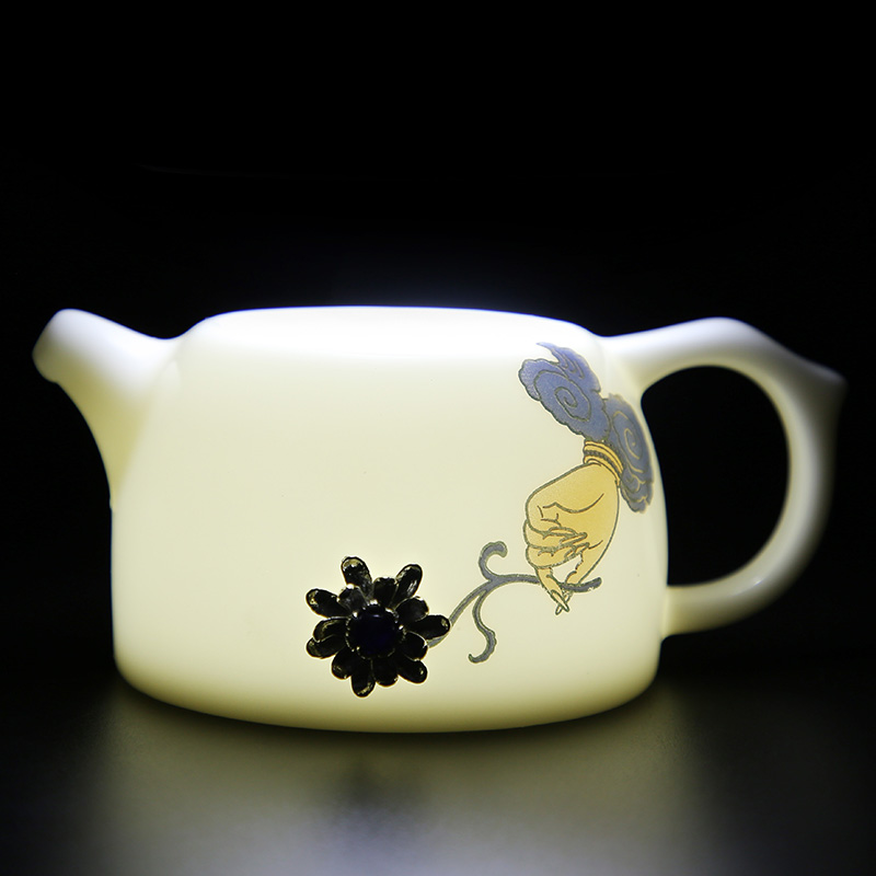 Inlaid silver white porcelain-side made the pot with silver white porcelain teapot-inlaid silver white porcelain teapot-inlaid silver with white porcelain cover bowl-Buddha with white porcelain cover bowl-inlaid silver with white porcelain cover bowl-pure white