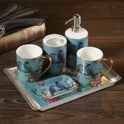 Dreamy blue European-style bathroom ceramic tea tray Tray Rectangular household creative jewelry tray Fruit tray Tea water tray