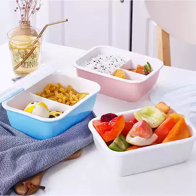 Split lunch box ceramic with lid multifunctional Japanese lunch box microwave oven for office workers large capacity fat reduction lunch box