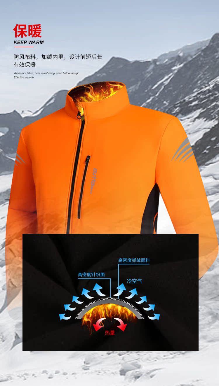 Aotuo sports outdoor men's cycling clothing warm stitching stretch fleece long-sleeved thermal cycling clothing windproof and rainproof
