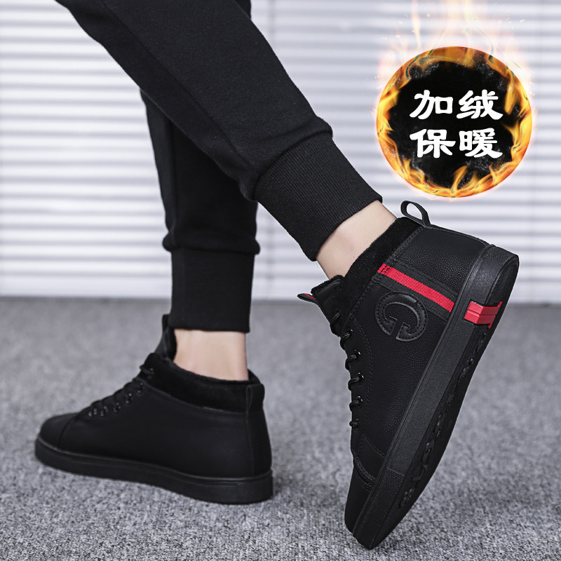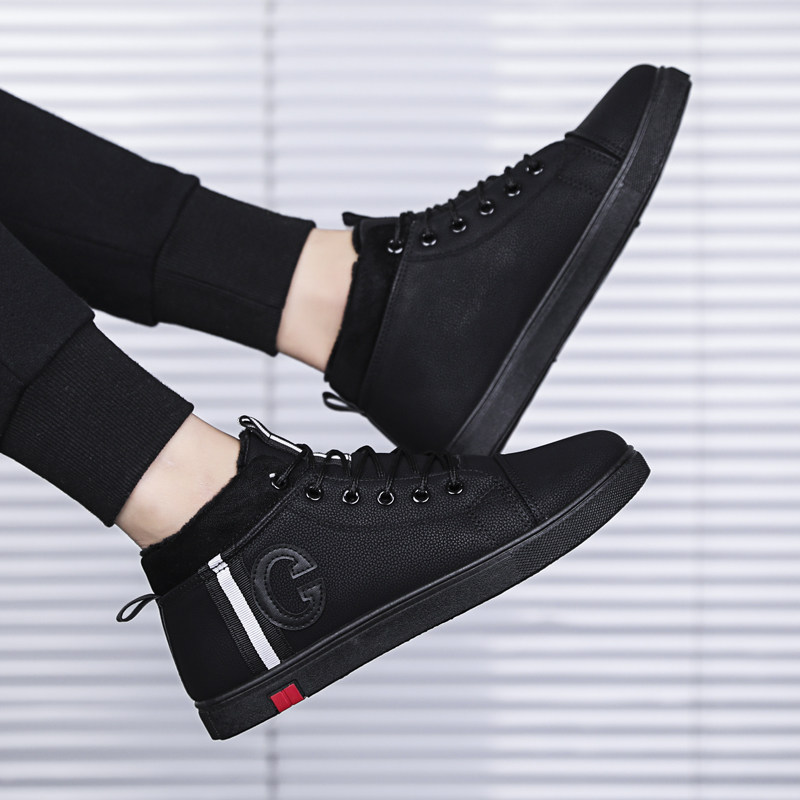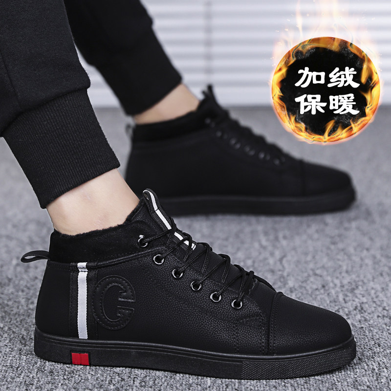 Winter youth casual cotton shoes plus velvet warm net red trendy shoes junior high school students thickened sports high-top men's shoes