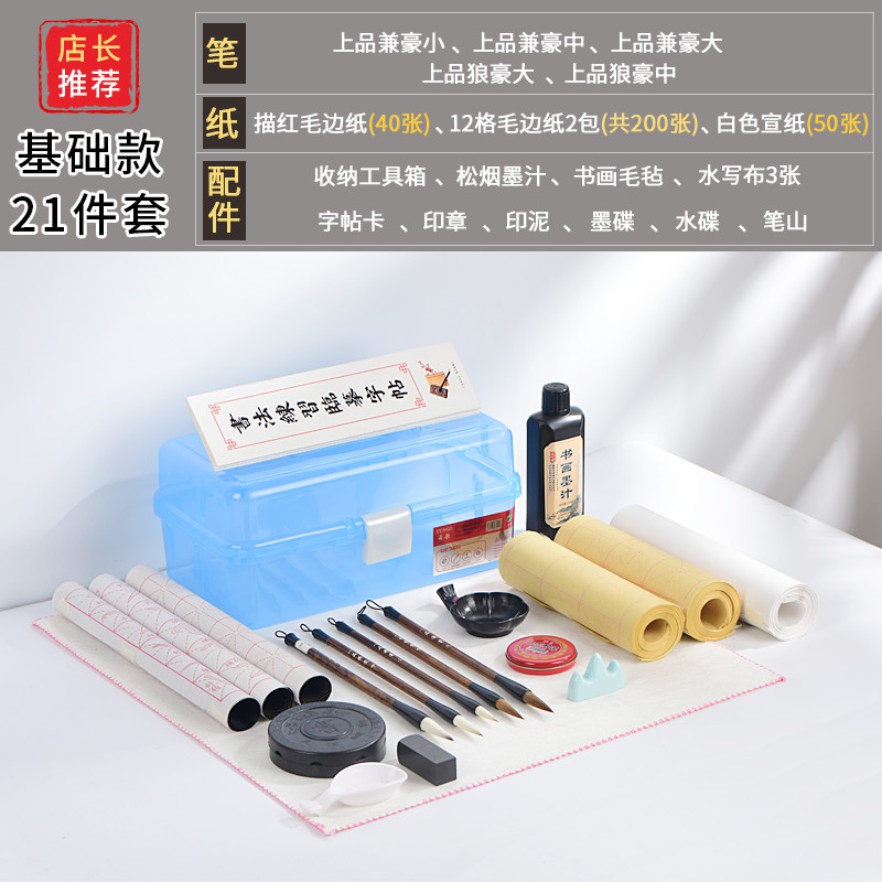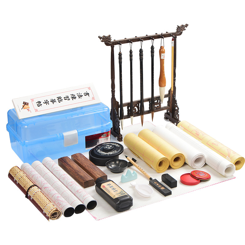 Brush set Beginner copybook water writing cloth Primary school students children pen ink paper inkstone Inkstone Felt pen holder Retro Wenfang Four Treasures Brush set High-grade professional calligraphy beginner starter set