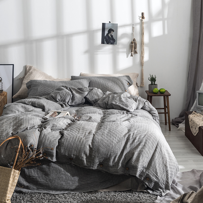 Plums for four sets of sets to buy washed cotton double layer yarn bed sheet Quilt Cover Color Loom for about 1 5m1 8m Double beds