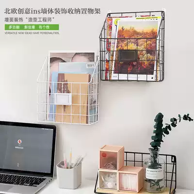 Creative Nordic ins wrought iron bookshelf wall magazine rack Simple room wall hanging newspaper rack Wall shelf
