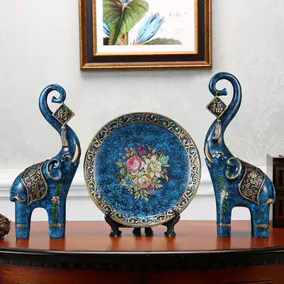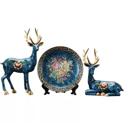 Snow flower basket couple deer pair snow flower basket couple deer set plate (with wooden frame) snow flower basket elk set with deer plate three-piece Golden Elk set with deer plate three-piece set spray blue dot simulation color elk set