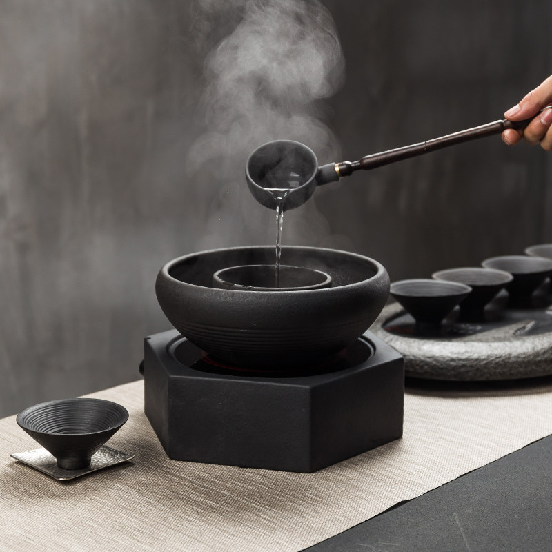 Bull Jen Volcanic Stone Cooking Tea Instrumental Kutian Tea With Black Tea Tea Tea Bowl Home Health Preservation Pot Warm Tea Ware Black Crystal Furnace Suit