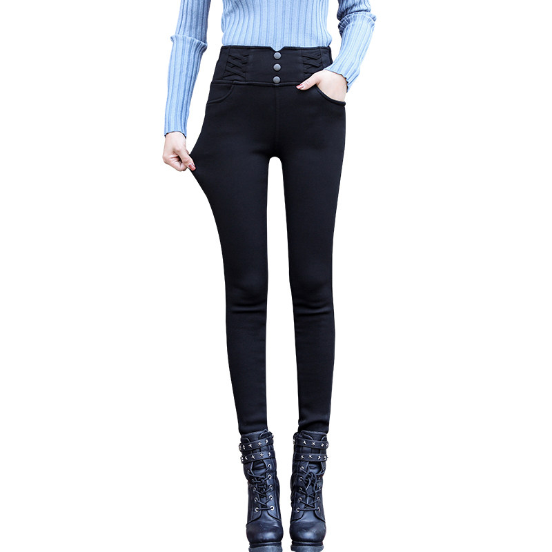 Hong Kong tide MK Korean version of autumn and winter wear long-stretched elastic tight lean leg cotton plus high waist paddle pants