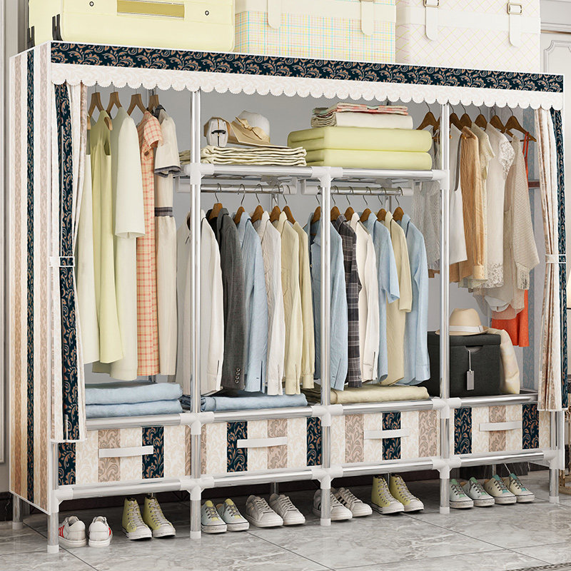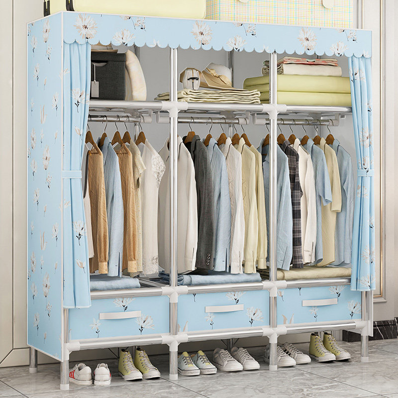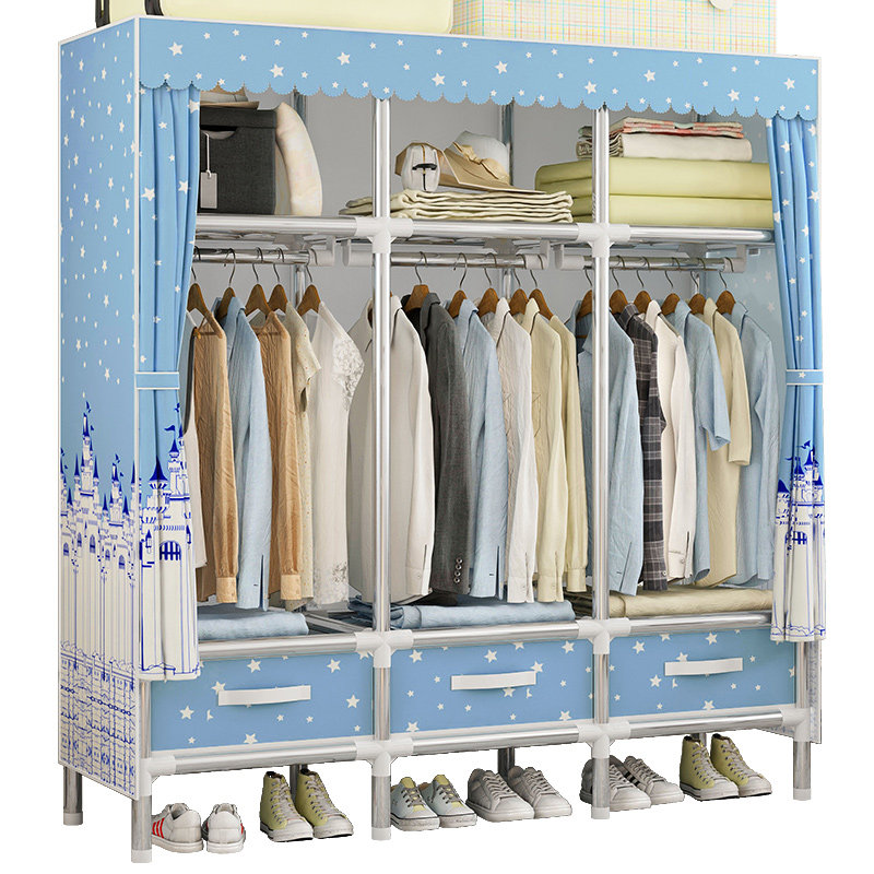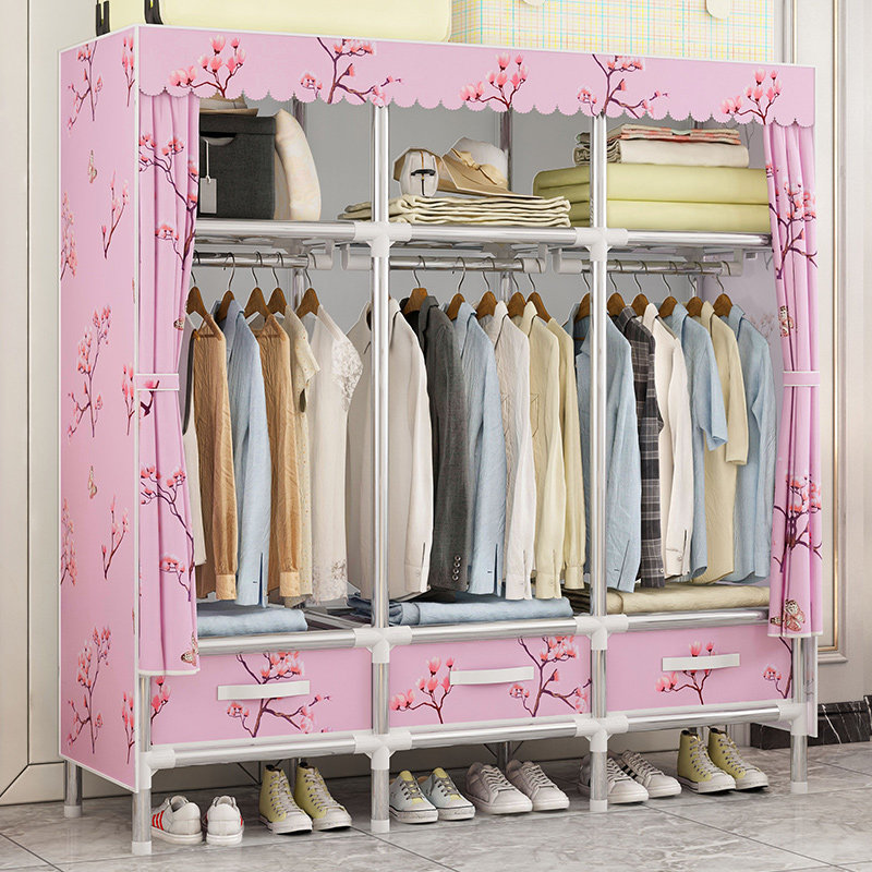Cloth wardrobe steel pipe simple with drawer Oxford cloth assembly wardrobe folding large wardrobe storage locker