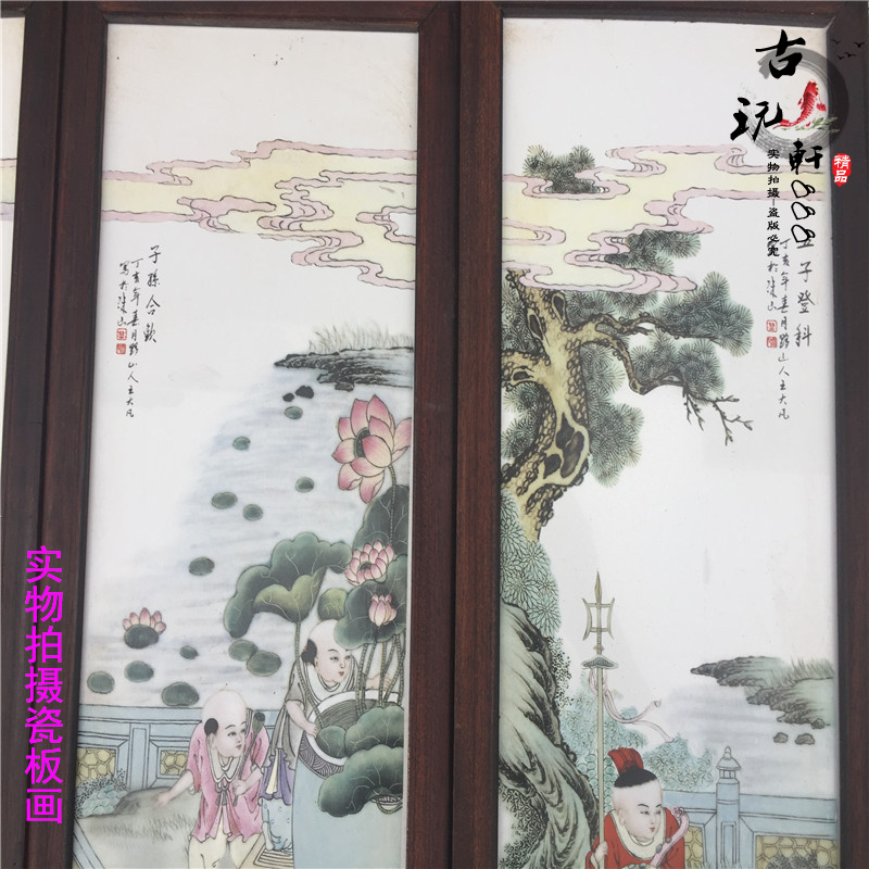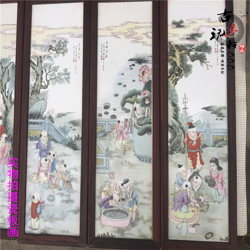 Jingdezhen Ceramic Porcelain Plate Painting Solid Wood Famous hands Painted Child Eva Play Hanging Painting Middle Living Room Hanging Painting Decoration