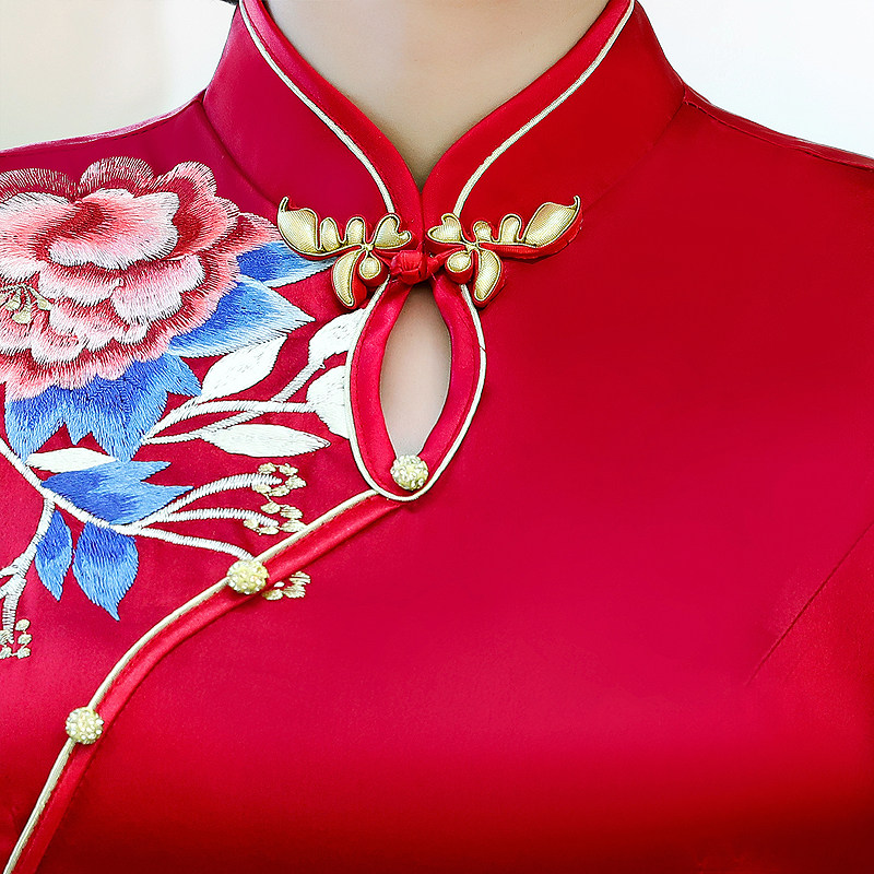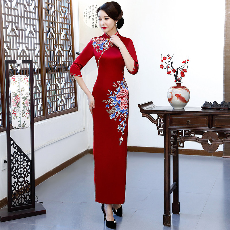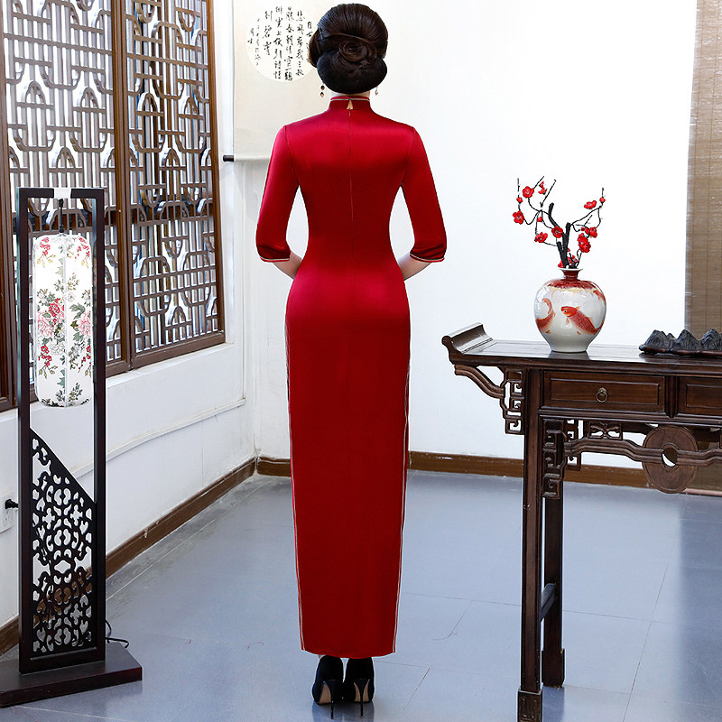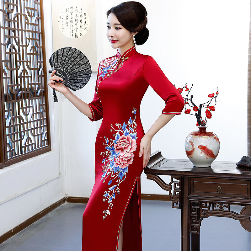 Happy knot wine red embroidered cheongsam seven-point sleeve wedding happy mother-in-law mother retro high-end 2022 new