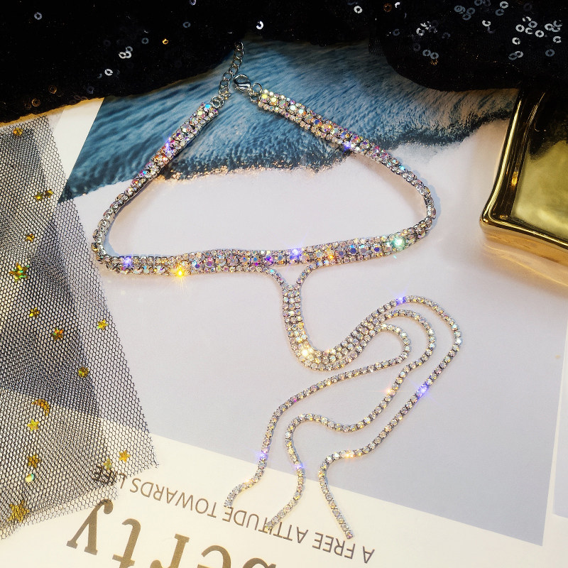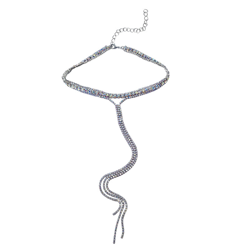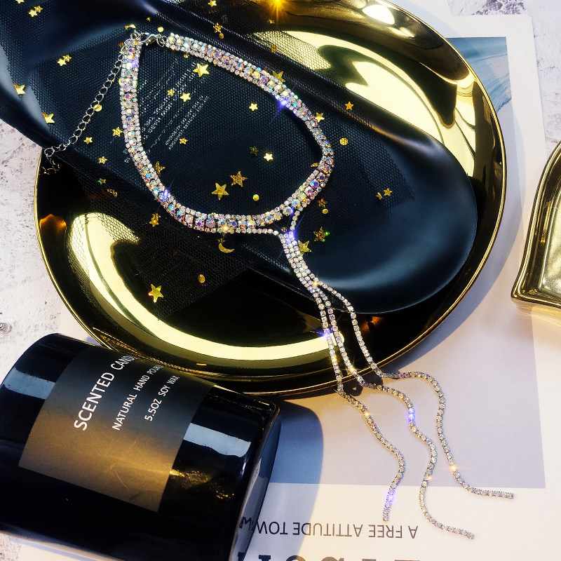 European and American exaggerated AB flash diamond long version tassel clavicle chain temperament necklace Neck jewelry Korean short money chain female