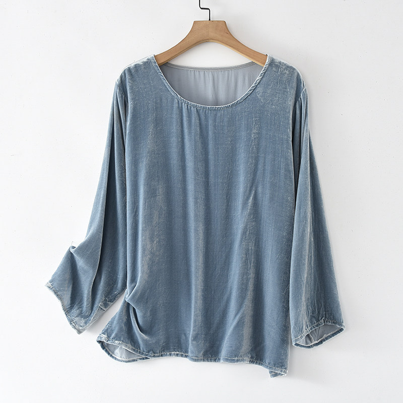 Minimalist Autumn Winter New Products Genuine Velvet Long Sleeve Blouse Blouse Women Pure Color Mulberry Silk Loose and Lean T-shirt Undershirt