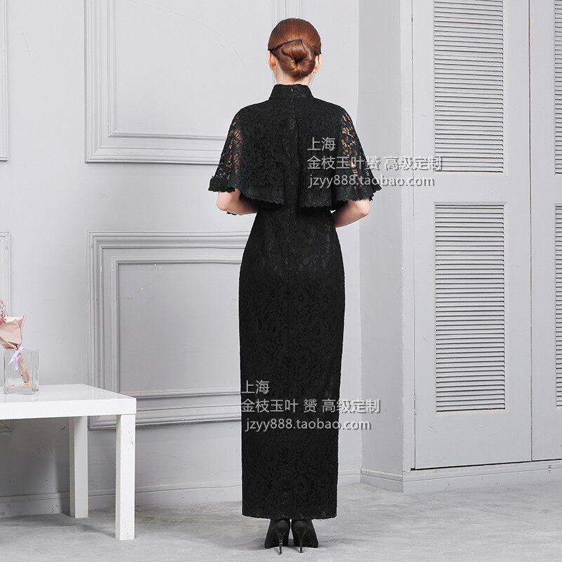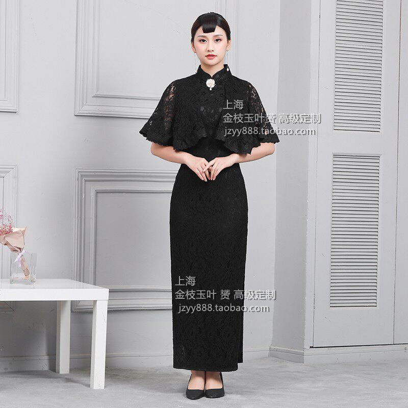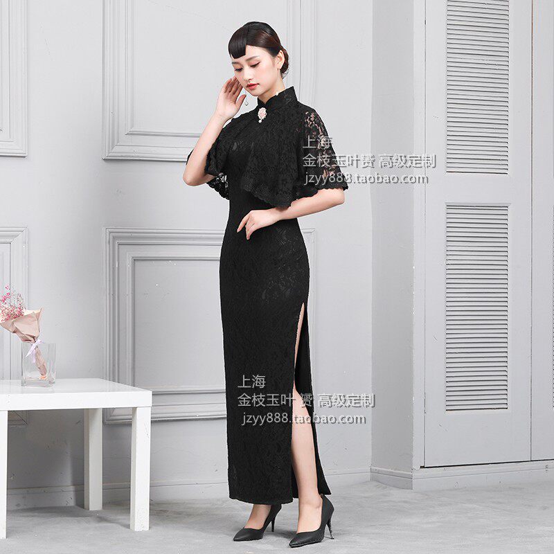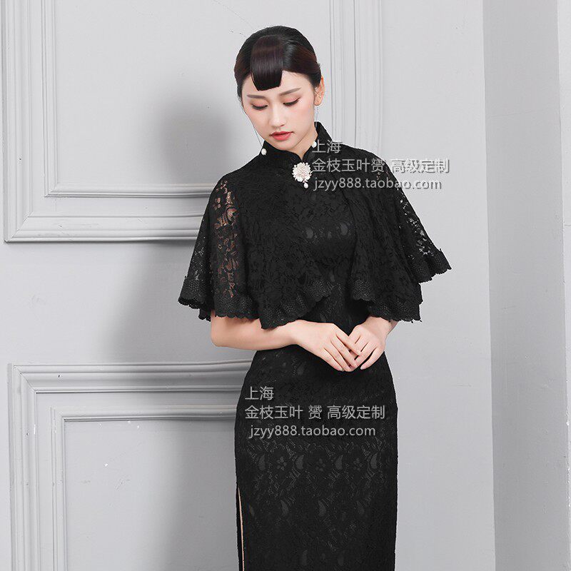 Haipie Republic Retro Charm Black Lace Shawl Cape Spring Autumn Long Qipao Fashion Mom Elegant Lady