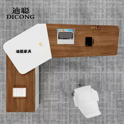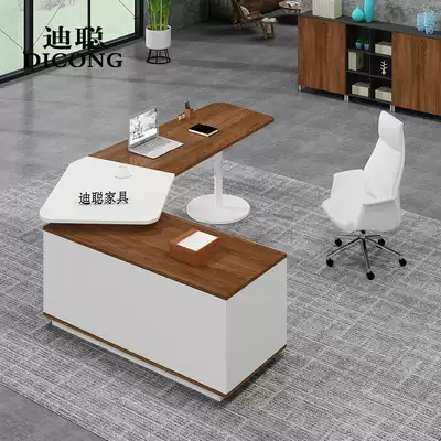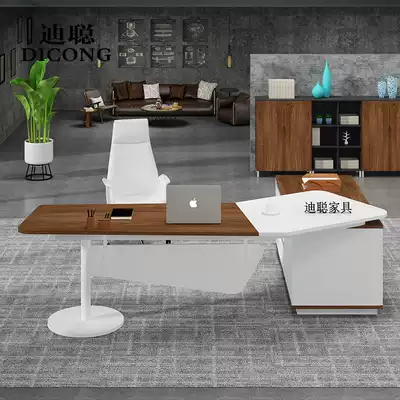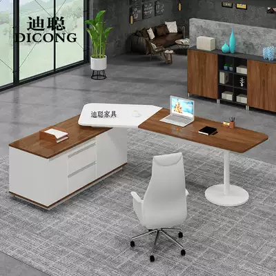 Creative paint boss desk simple modern shaped manager table large Class table pasted Solid Wood Wood leather corner arc