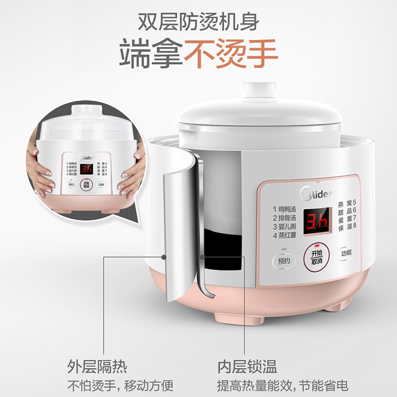 Midea electric saucepan soup pot electric with fully automatic electric stew cup home mini one person food water-proof soup health pot