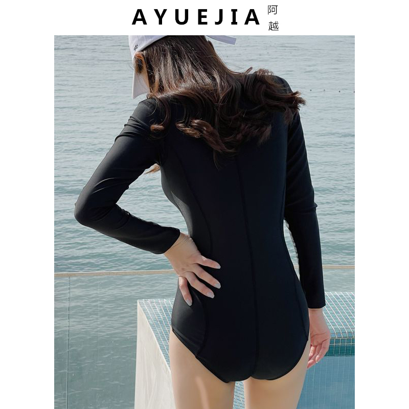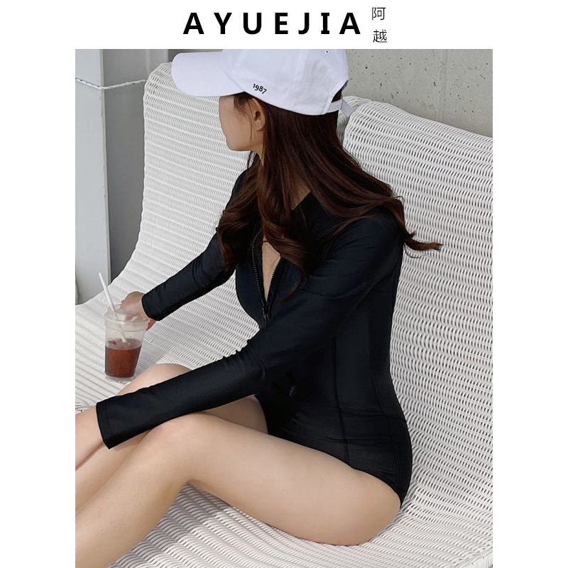 2021 new South Korean ins swimsuit black long sleeves slim fit swimsuit female conservative student Veil Slim Spa