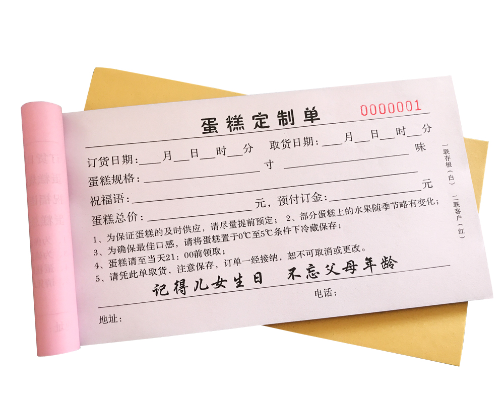 Cake order single bakery receipt bakery order collection receipt carbon-free self-contained copy two-way sales order