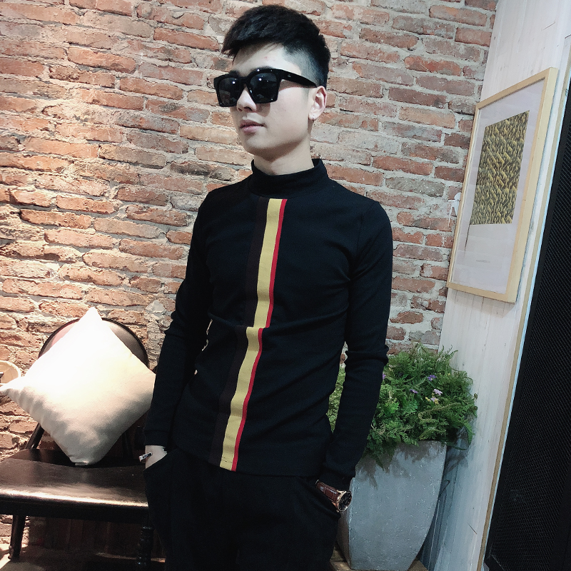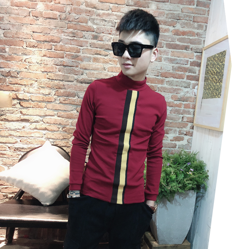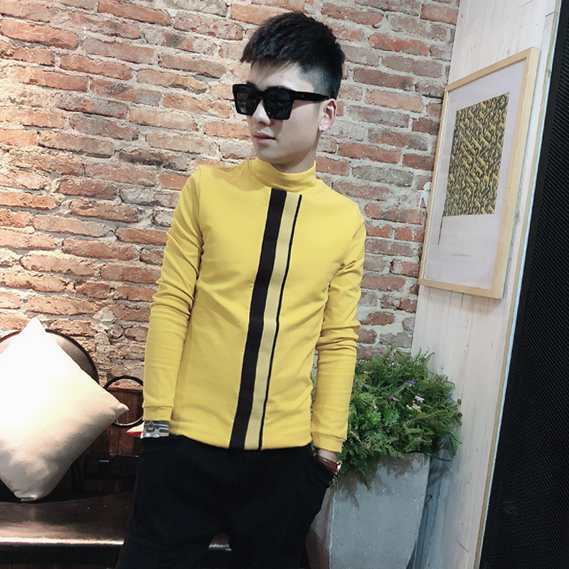 Hipster mid-collar base shirt T-shirt Male spirit guy tight velvet long-sleeved T-sleeve Korean version of the personality handsome T-shirt tide