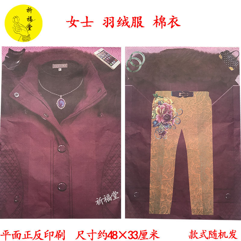 Sacrificial cold clothes ladies down jacket cotton clothes pants paper clothes paper money coins ingot burning paper supplies wholesale