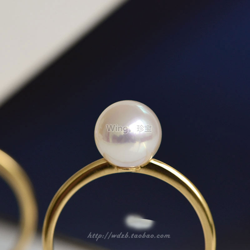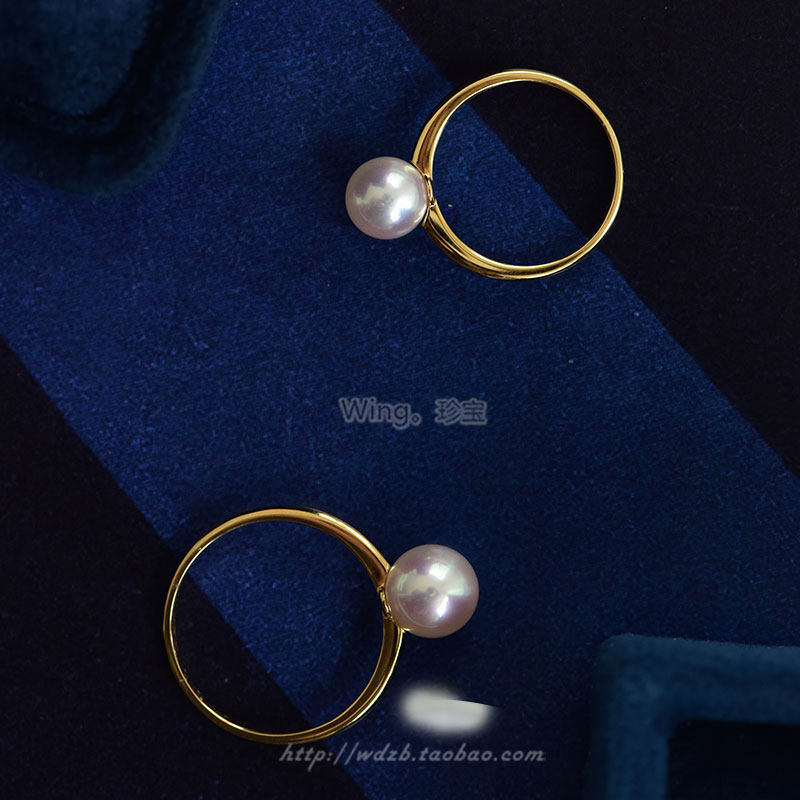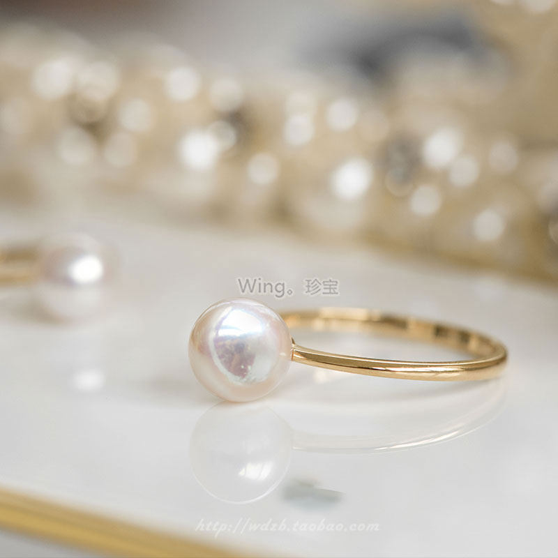 Wing -- Somme 18K gold Japan akoya sea water pearl ring female classic warm and elegant-Taobao