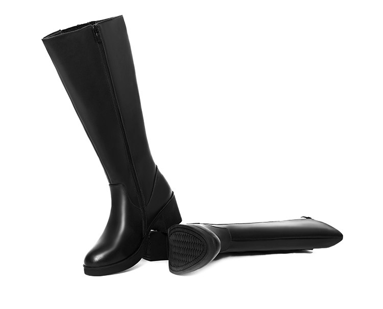 Winter leather wool women's boots large size medium boots women's medium thick heel high boots plus velvet cotton boots cowhide long boots women