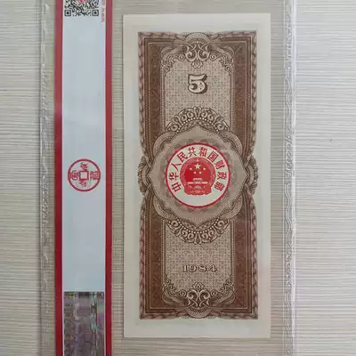 1984 5 yuan Treasury bill with 456 tail number Ai Zang rating 64E