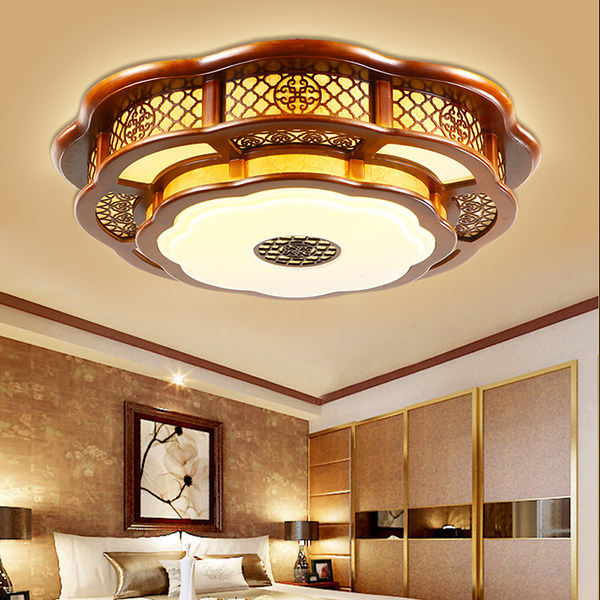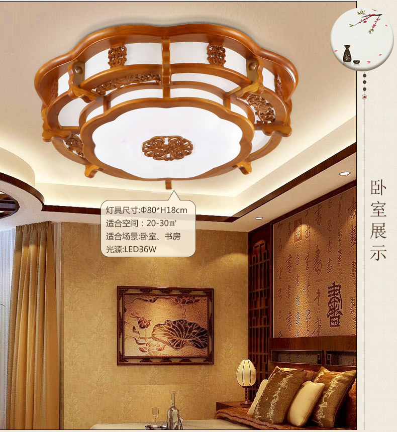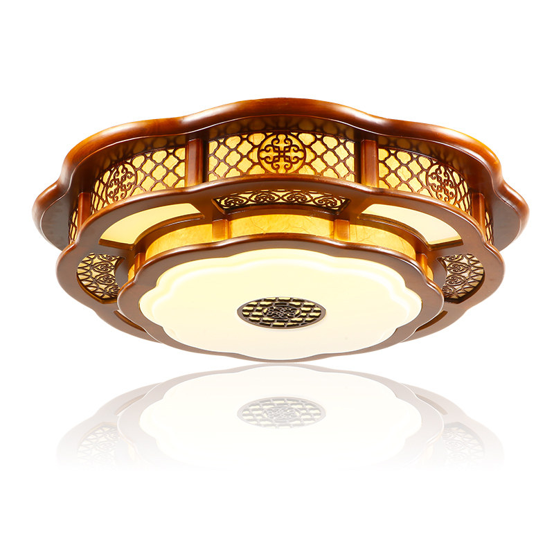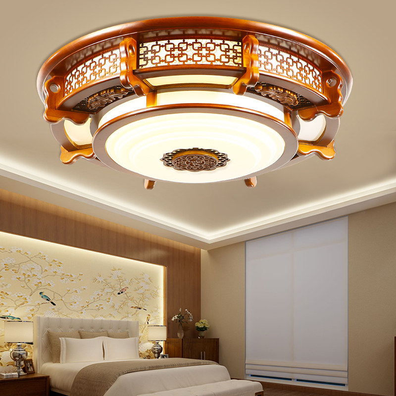 Modern Chinese living room suction ceiling light solid wood classical engraving round sheepskin light imitation ancient Chinese wind dining room bedroom lamp