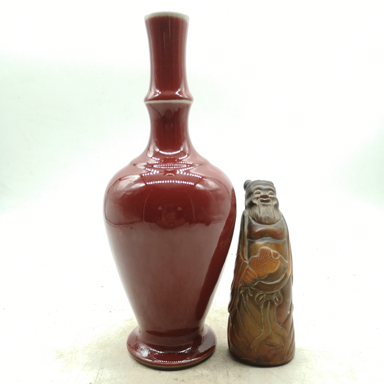 70s Jianguo Porcelain Factory High Temperature Zhu Red Glaze Shake Bell Zumbu Fubottle Imitation Ancient Porcelain Old Goods Factory Goods Pendulum