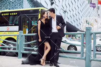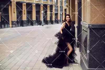 New photo studio theme clothing fashion street shoot before short and back long black wedding couple photo photo photography dress
