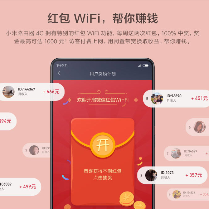 Original Clothing Xiaomi Router 4C High-speed WiFi Wear Wall King Intelligent Anti-Rubbing Nets 100 trillion Optical Fiber Wireless Router
