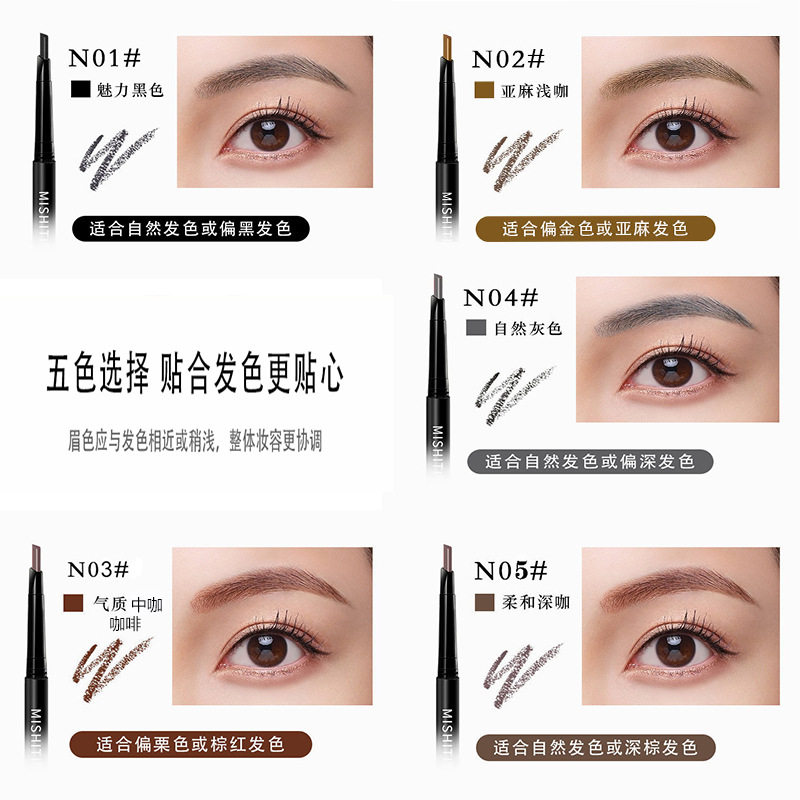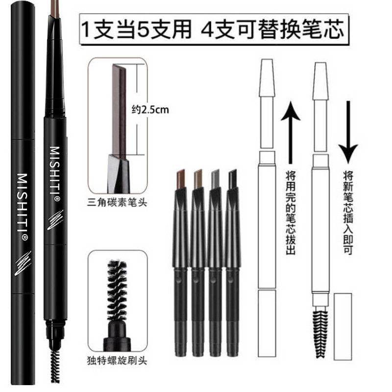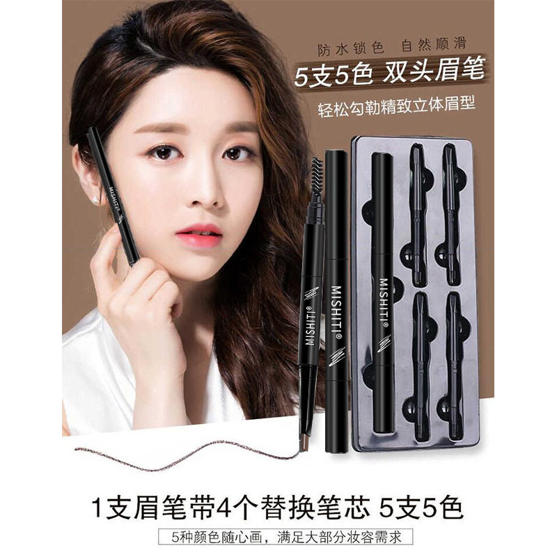 MISHITI Beginners 5 sets of double-headed eyebrow pencil replacement set box waterproof, sweat-proof and not smudged