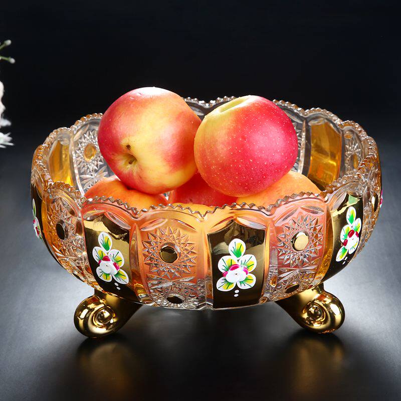 Nordic fruit plate Crystal glass fruit plate Household large living room dry fruit plate Simple snack plate High-grade fruit basin