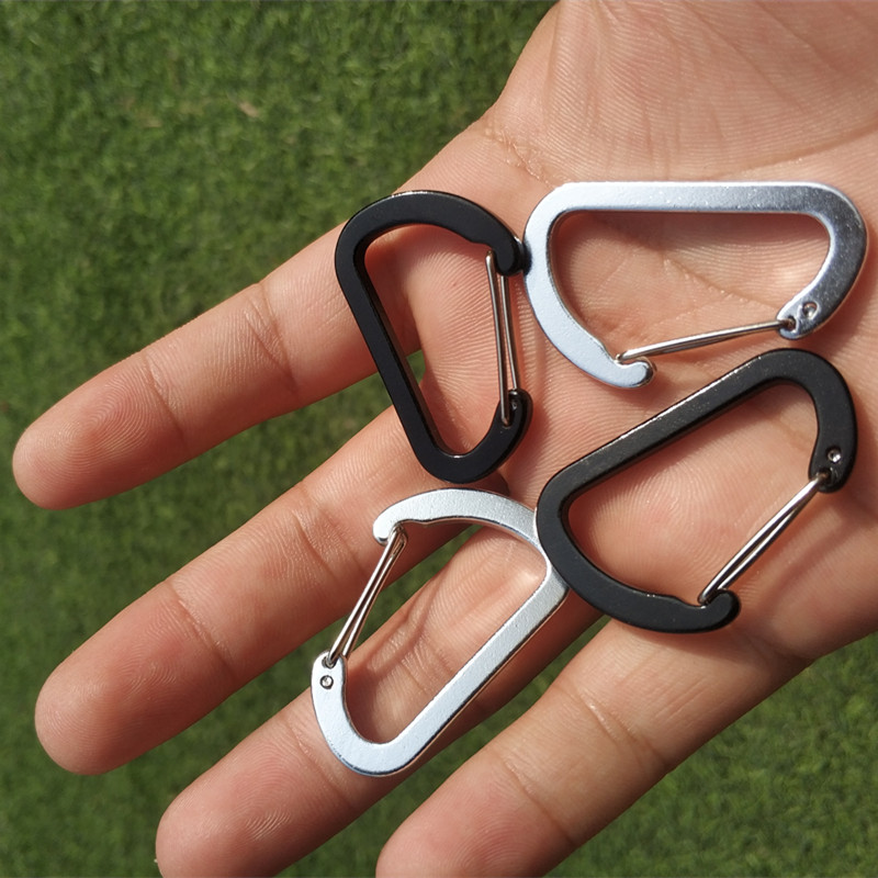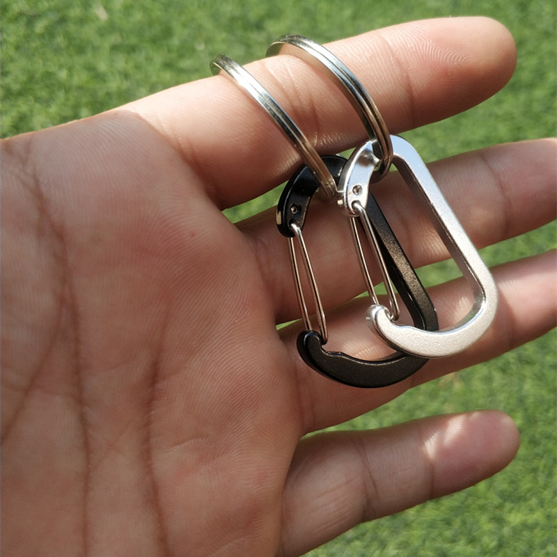 D-type steel carabiner Aluminum alloy mini keychain bag buckle Sports outdoor hook multi-function quick hanging