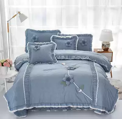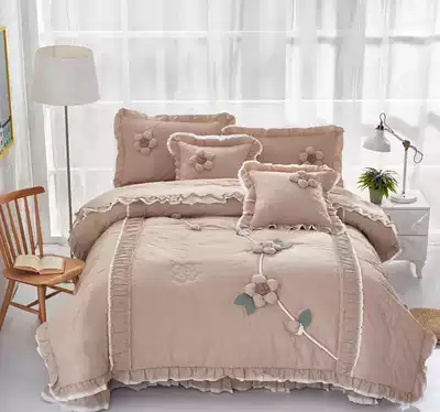 South Korea imported autumn and winter new cotton washing color cotton flower four-piece set of four seasons quilt cover bed cover pillowcase multi-color optional